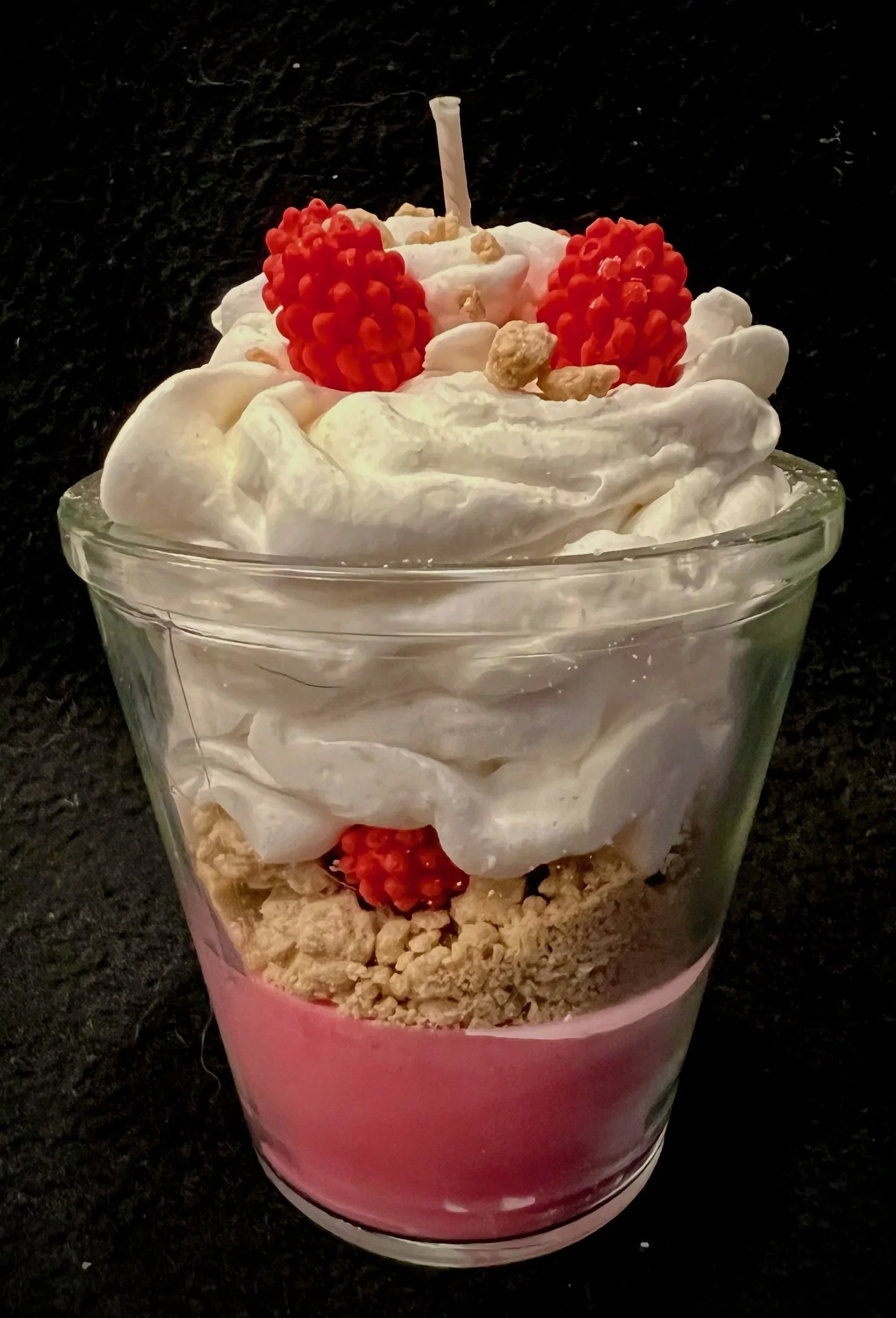 Candle Store › Rasberry Delight Image 1 of 3 Image 2 of 3 Image 3 of 3 Rasberry Delight $15.00 Soy wax and soy whipped wax with crumble. Raspberry scent. Premium wick Burns for 72hoursH 3inW 2in Add To Cart Added! Soy wax and soy whipped wax with crumble. Raspberry scent. Premium wick Burns for 72hoursH 3inW 2in
